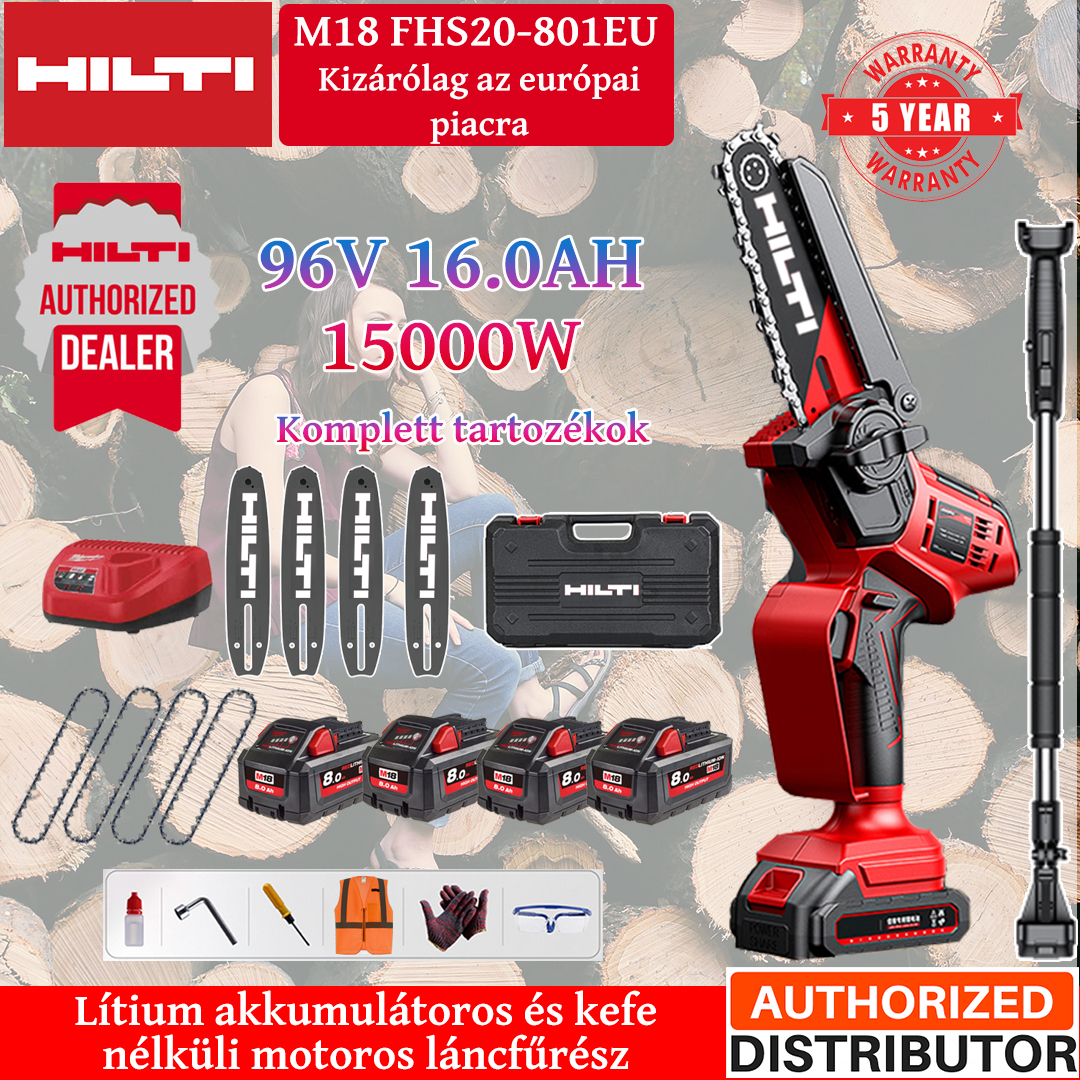 Hilti 15000 W-os 96 V-os lítium akkumulátoros láncfűrész kefe nélküli motorral.